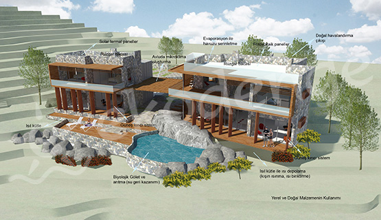 In this project, developed in line with integrated design principles, photovoltaic and solar thermal systems, underground heat pump, heat recovery and wind power systems were used for energy generation, and an effective water and waste management study was carried out. In addition to effective systems, the energy efficiency of the building was supported by passive systems.For design of the dwelling enabling user-friendly space solutions, natural and local materials were used and conservation of historical and cultural characteristics of the region was ensured.