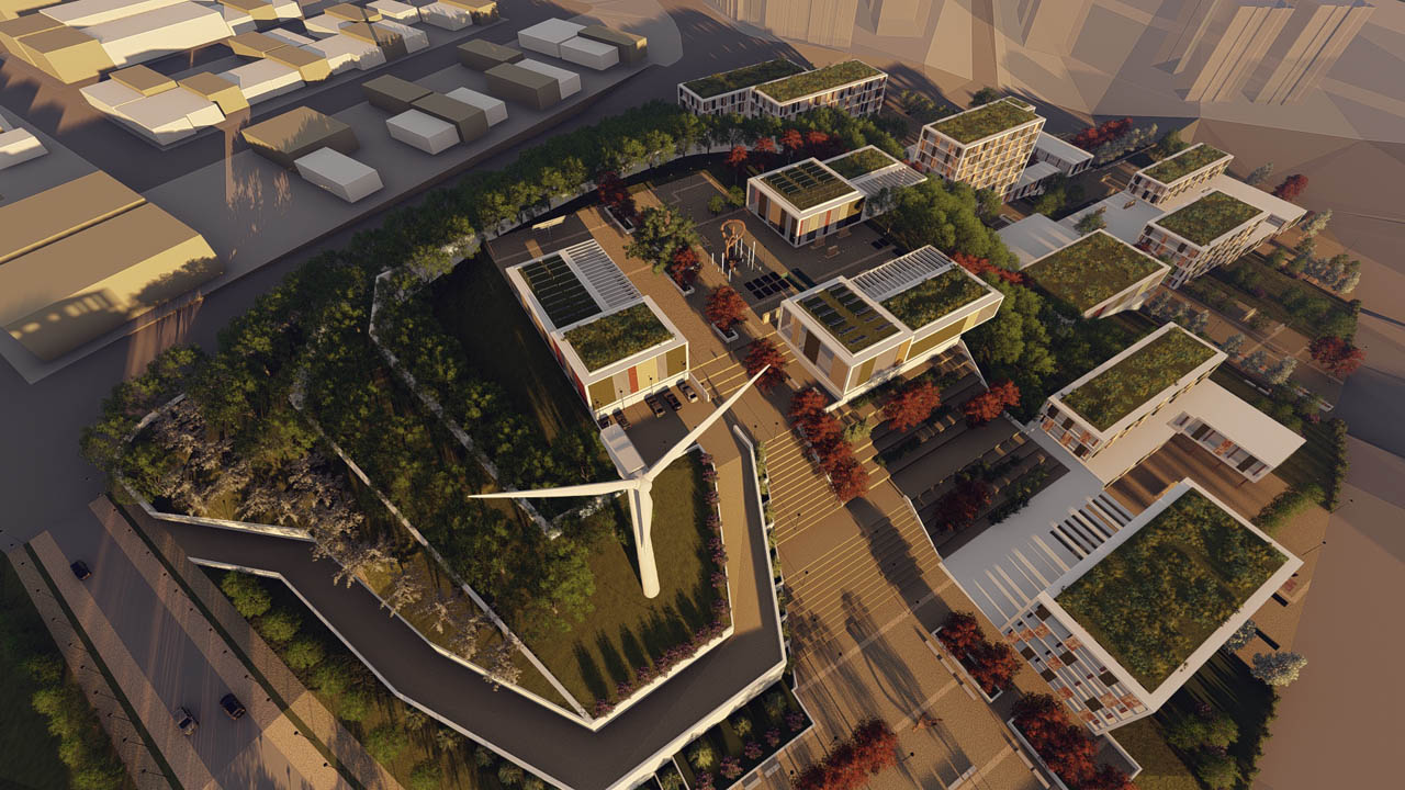 Basic design objectives are to provide a sustainable cooperation, research and working environment, to raise awareness on clean production processes and sustainability of buildings, to be a pioneer in terms of contemporary aggregation, working and cooperation methods, to enhance competitiveness at international level and to develop a model OIZ at international level.