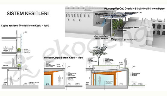 Proje, yarışmanın amacı olan Orhangazi Meydanı ve Çevresi’nin Tarihi Kent Merkezi’nin kimliğine uygun olarak günümüz kullanıcılarının ihtiyaçlarına hizmet edecek şekilde yeniden düzenlenmesi hedefi doğrultusunda; dinamizm, sağlamlık, dönüşebilirlik, fonksiyonellik, sürdürülebilirlik, koruma, özgünlük ve estetik kavramları üzerinden şekillenmiştir. Projede kırılgan tarihi ve kültürel çevre dokusu dikkate alınarak radikal müdahalelerden uzak durulmuş, noktasal çözümler ve bütüncül bir yaklaşımla ekonomik ve uygulama kolaylığı olan bir yapı önerilmiştir.